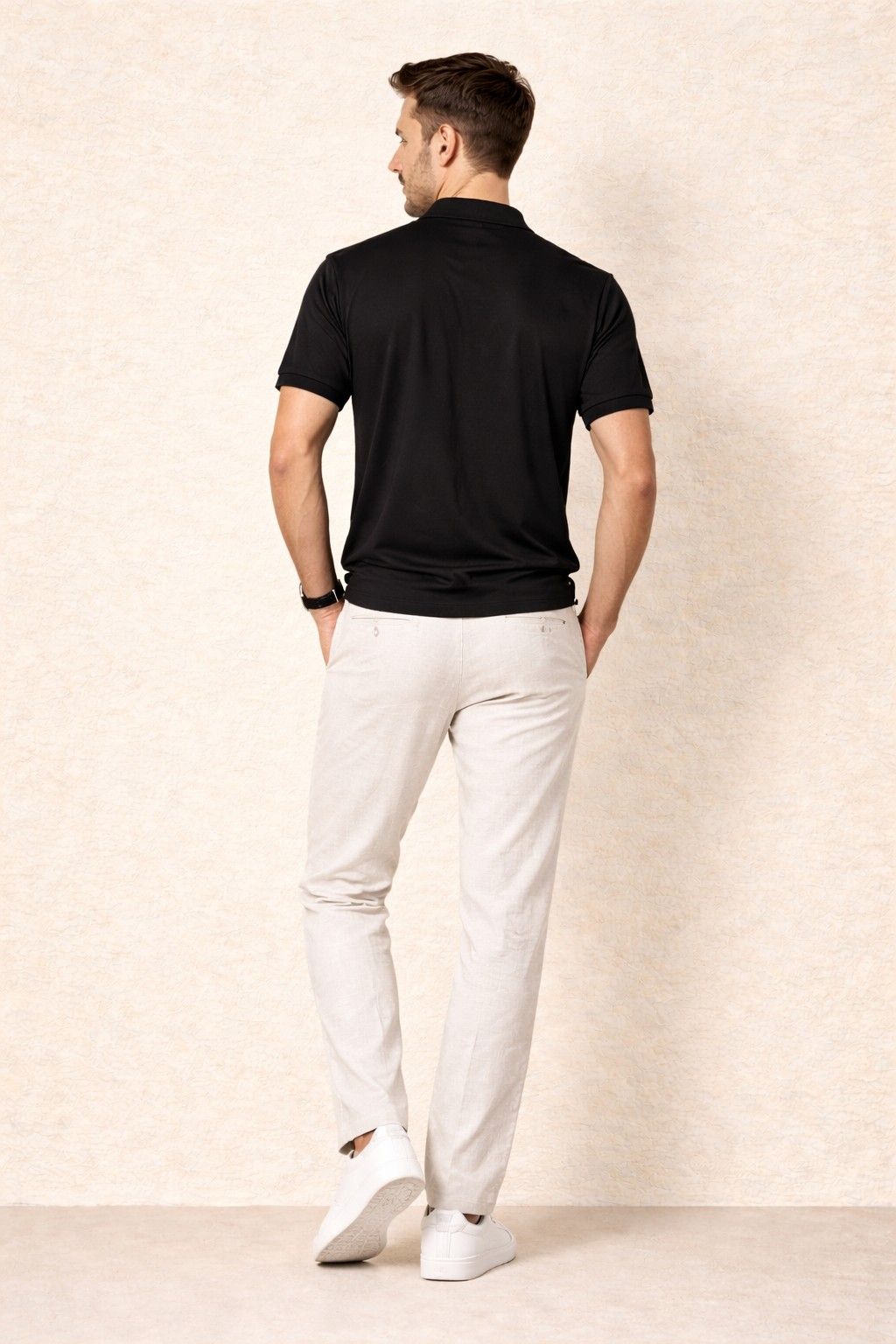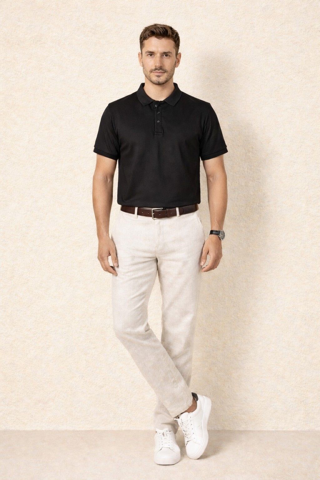 The Classic Black Regular Fit Polo T-Shirt suits a wide range of body types and personal styles. You can pair it with denim jeans for a relaxed everyday look or match it with chinos or trousers for a smart-casual outfit. Sneakers offer a casual vibe, while loafers or casual shoes create a more polished finish.