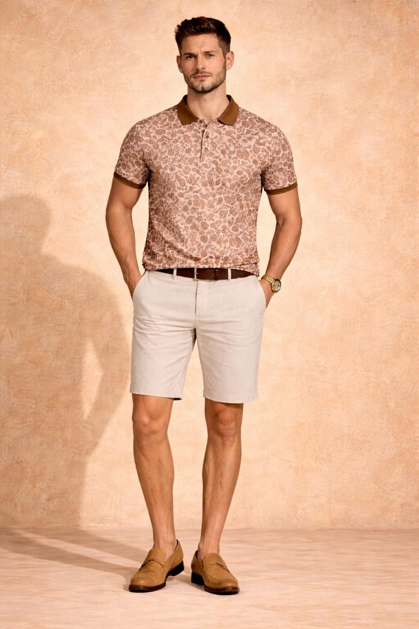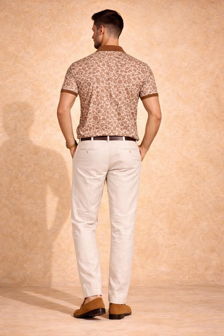 Refresh your wardrobe with this elegant polo T-shirt that blends classic charm with contemporary design. The rich coffee brown color creates a premium base, while the subtle paisley print adds visual depth without overpowering your look. As a result, this polo transitions effortlessly from casual outings to smart-casual settings.