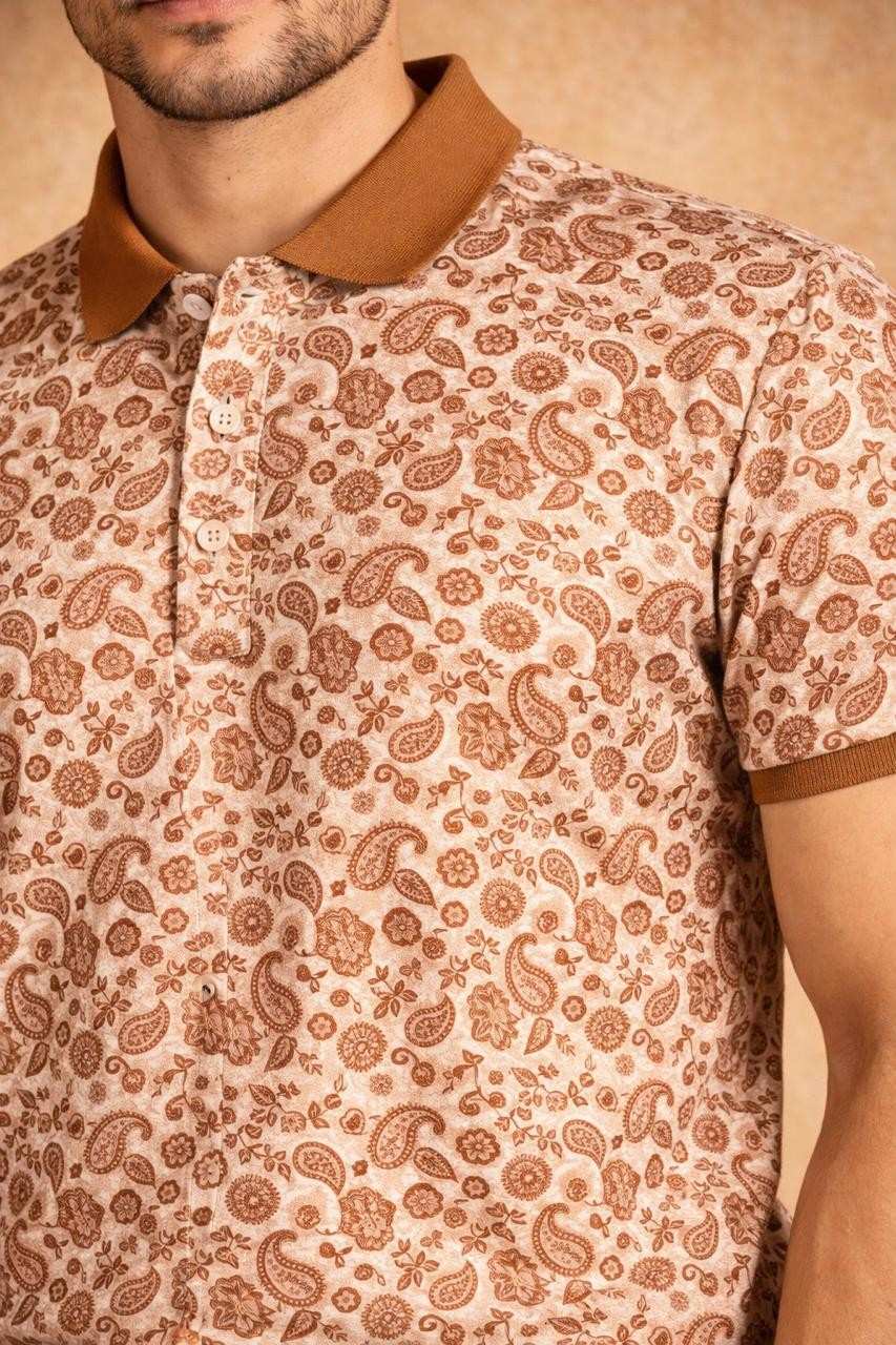 Coffee Brown Paisley Polo T-Shirt for Everyday Comfort