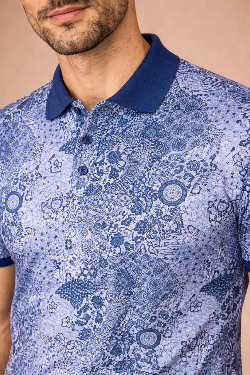 In addition, the mosaic print design adds depth and character without overpowering the overall look. The subtle pattern blends perfectly with the mermaid blue base, creating a balanced and versatile style. Furthermore, the classic polo collar and clean button placket give the T-shirt a polished finish, making it suitable for a variety of occasions.
