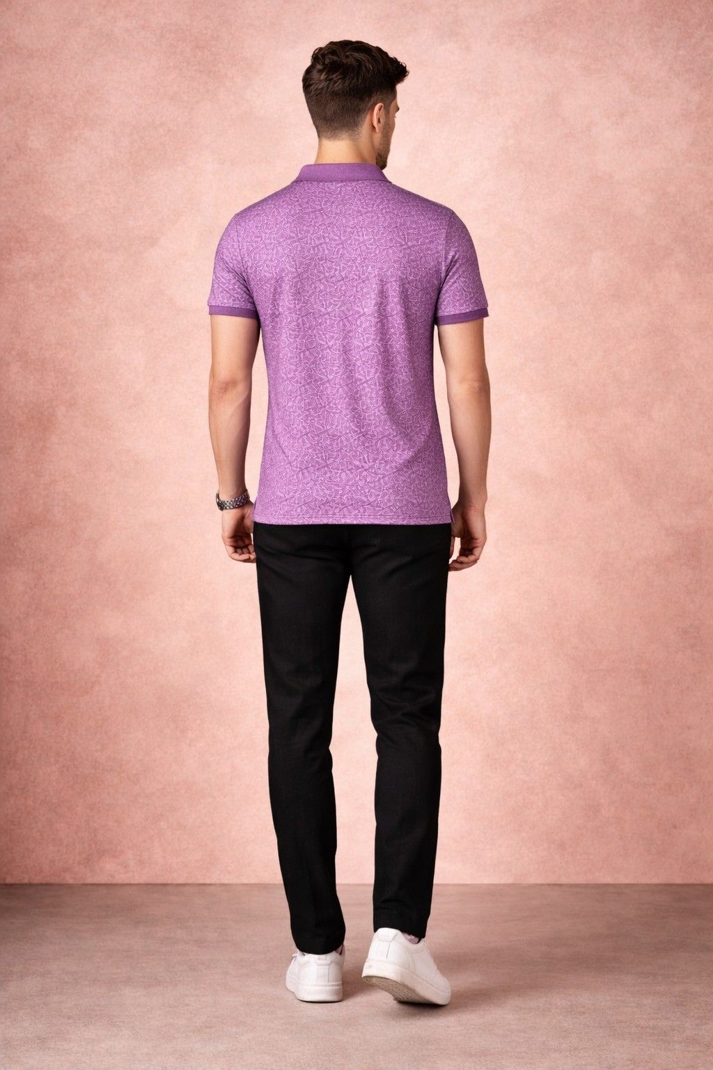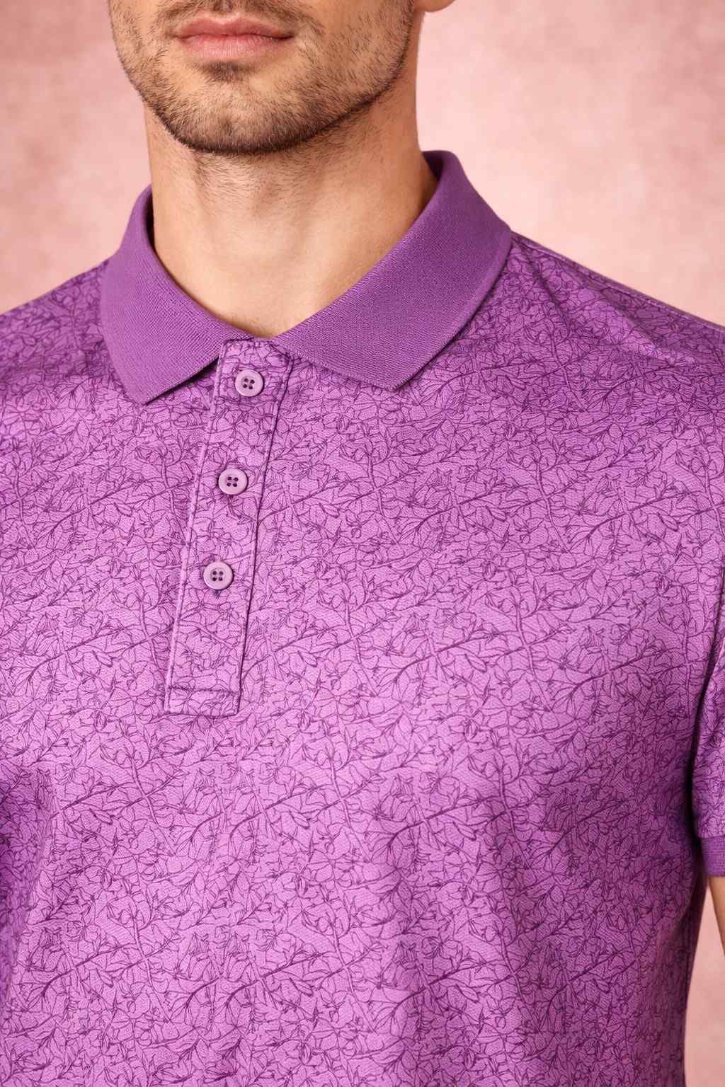 Purple Abstract Printed Polo T-Shirt – Lightweight & Stylish Everyday Wear